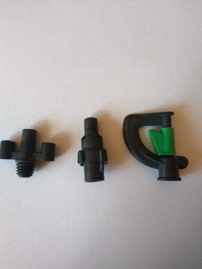 Sprzedam mikrozraszacze z antykapaczem, średnica zraszania jakieś 6 metrów. Mogą być stosowane jako podwieszane lub normalnie na szpilce. Przyłącze gwint 3/8. Posiadam kilkaset szt. Cena 3.50zł za sztukę.