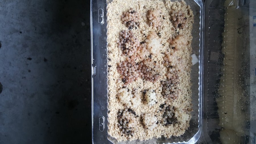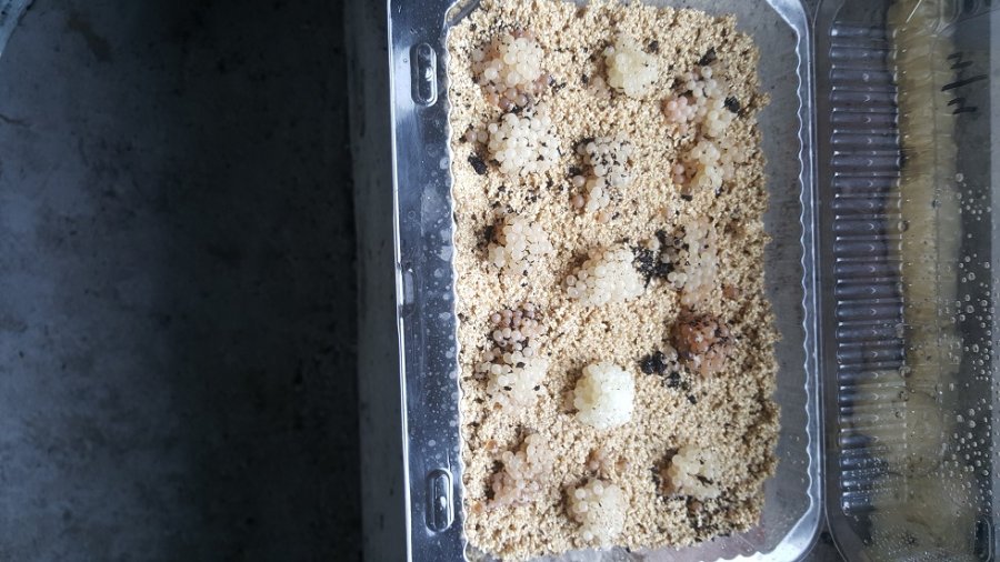 To białe pod kokonami to wermikulit na którym w ubiegłym roku ślimaki wylęgały się bardzo dobrze.
